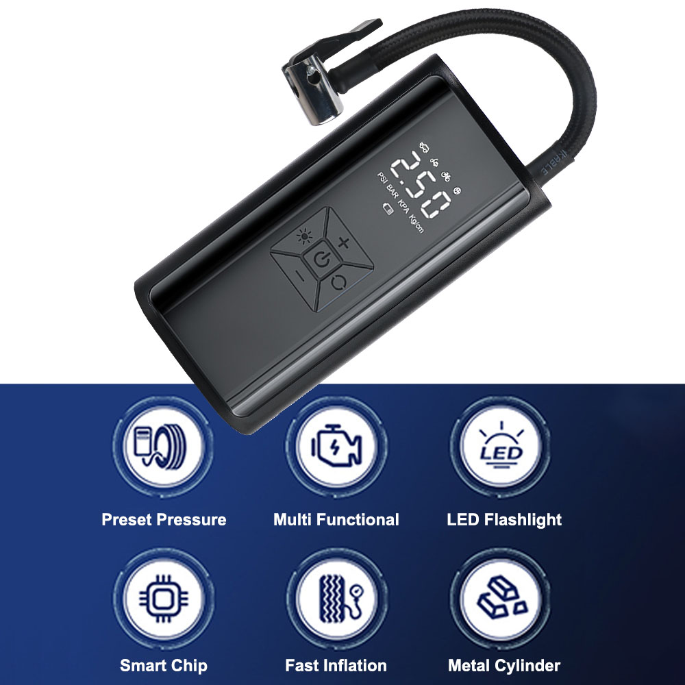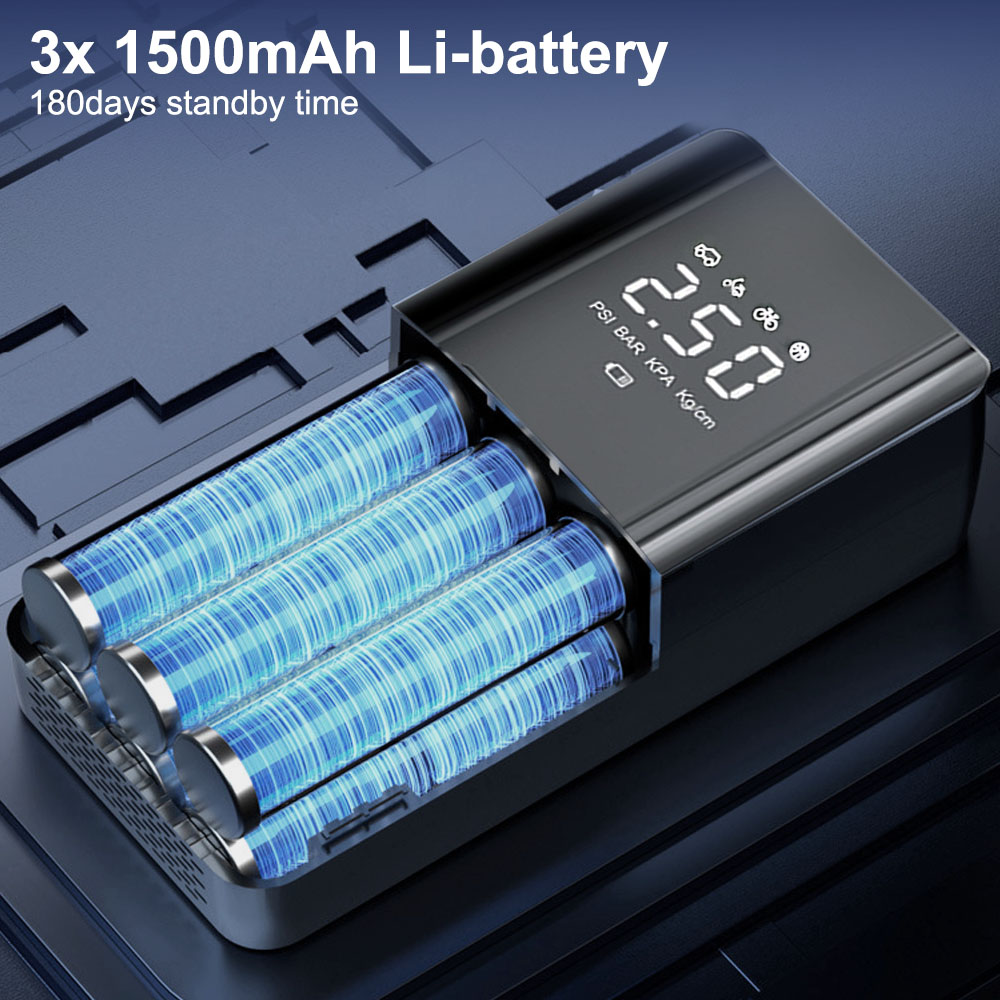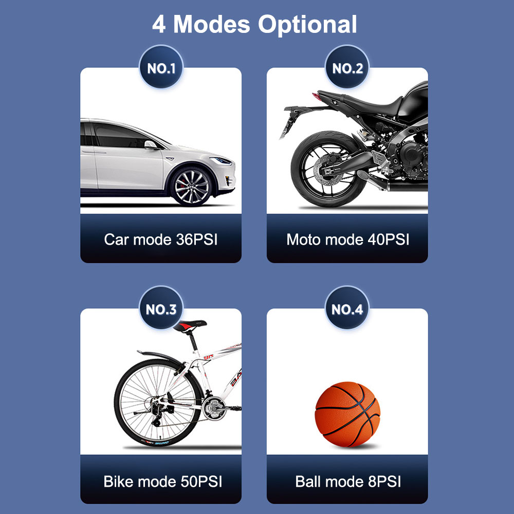 Pressão dos pneus predefinida, 5 botões de operação, exibição precisa da pressão.